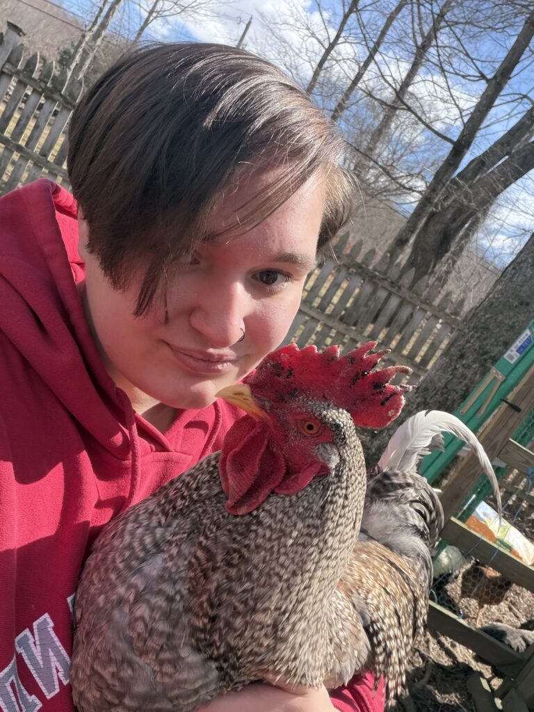 I am a huge animal lover. I love chickens, birds, and cats. We have a lot of animals In my family!